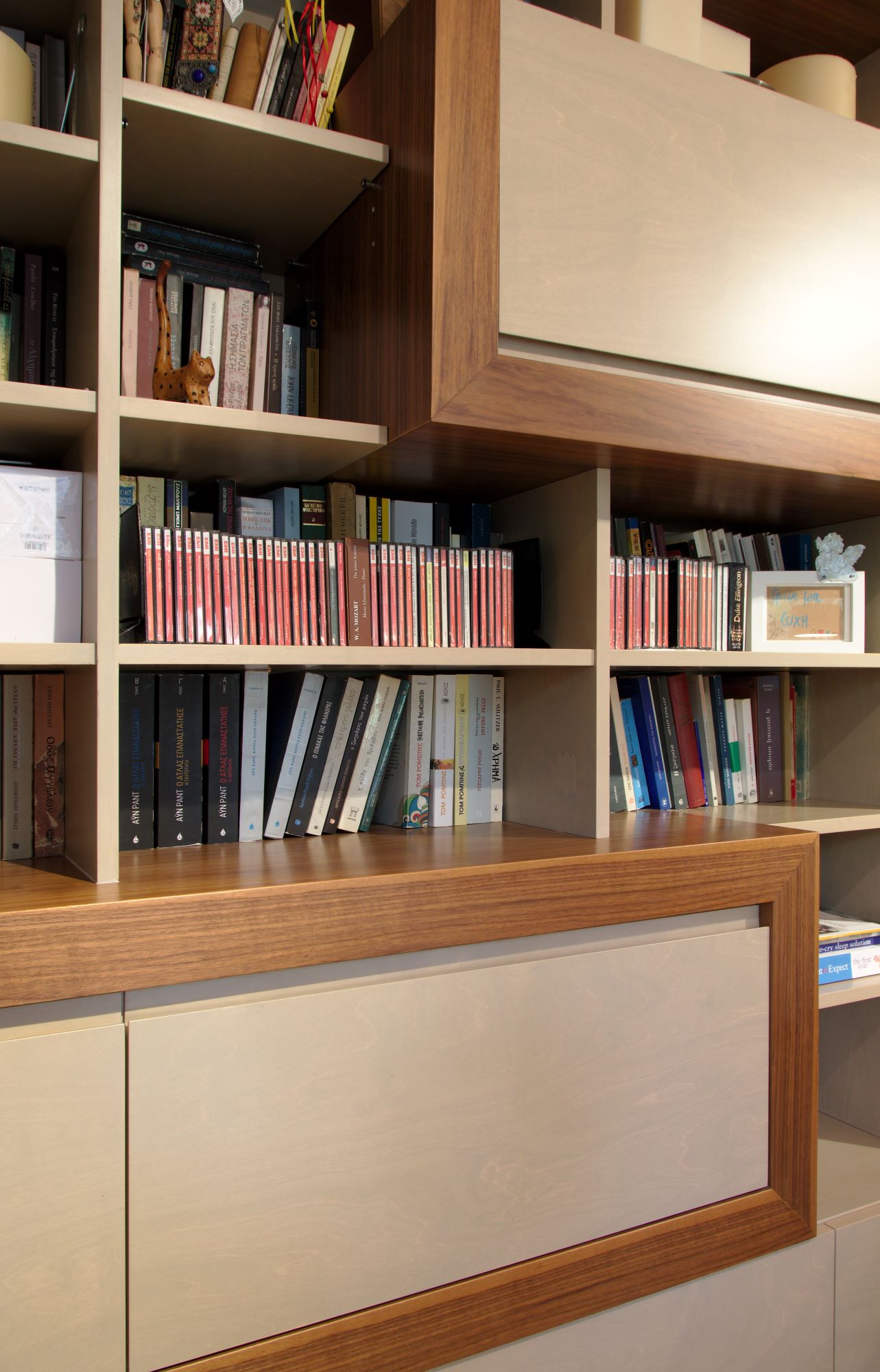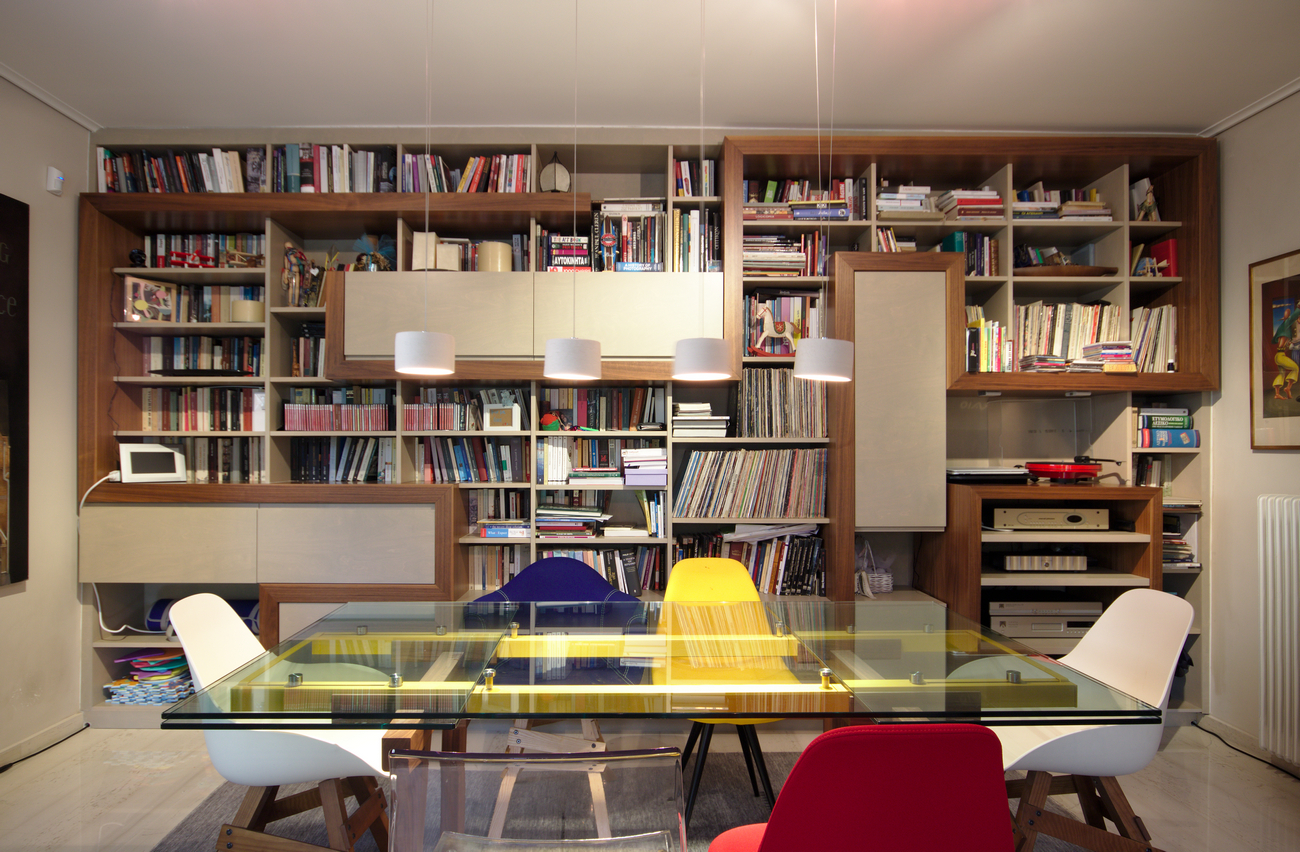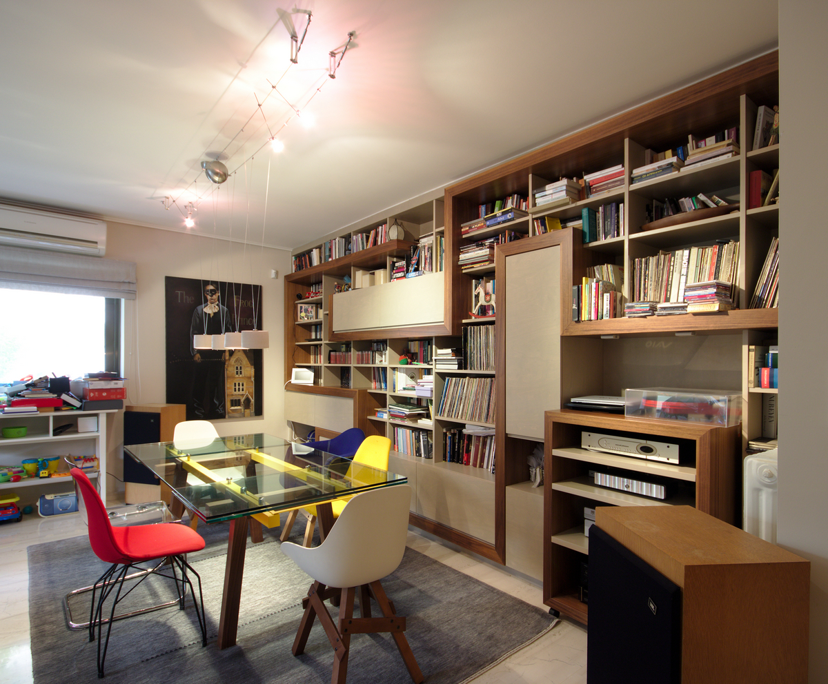 Το ζευγάρι αποφάσισε να ανανεώσει τον χώρο, κρατώντας κάποιες σταθερές, (πχ. ξύλινα δάπεδα, πατώματα), σύμφωνα με τη δική τους αισθητική και τις δικές τους ανάγκες. Έτσι αντικαταστάθηκαν τα έπιπλα κουζίνας και οι τρεις ντουλάπες των υπνοδωματίων, ενώ ανακατασκευάστηκαν εξ ολοκλήρου το μπάνιο και το WC. Το έργο περιελάμβανε επίσης τη μελέτη φωτισμού σε συγκεκριμένους χώρους του σπιτιού και τη μελέτη χρωματικής απόδοσης των χώρων. Στη συνέχεια, αφού κατοικήθηκε το διαμέρισμα, σχεδιάστηκε και υλοποιήθηκε η μεγάλη βιβλιοθήκη στο χώρο του καθιστικού.