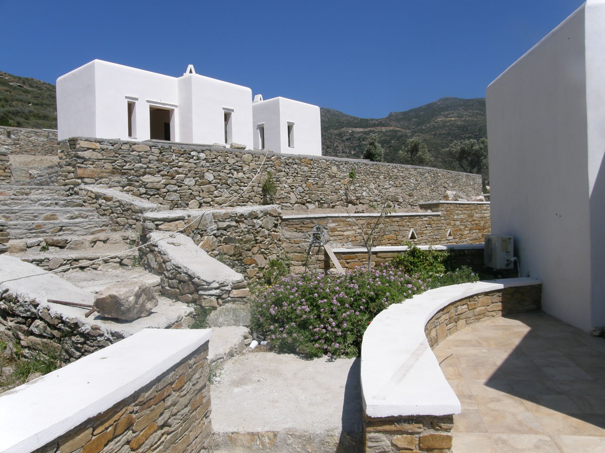 ‘Ostria Village’ hotel is placed on the Cycladic island of Ios, about 800m away from Milopotas beach. It consists of 18 small studios, swimming pool and open bar. The project was engaged in 2003, while the construction started in 2007 and completed in 2018.